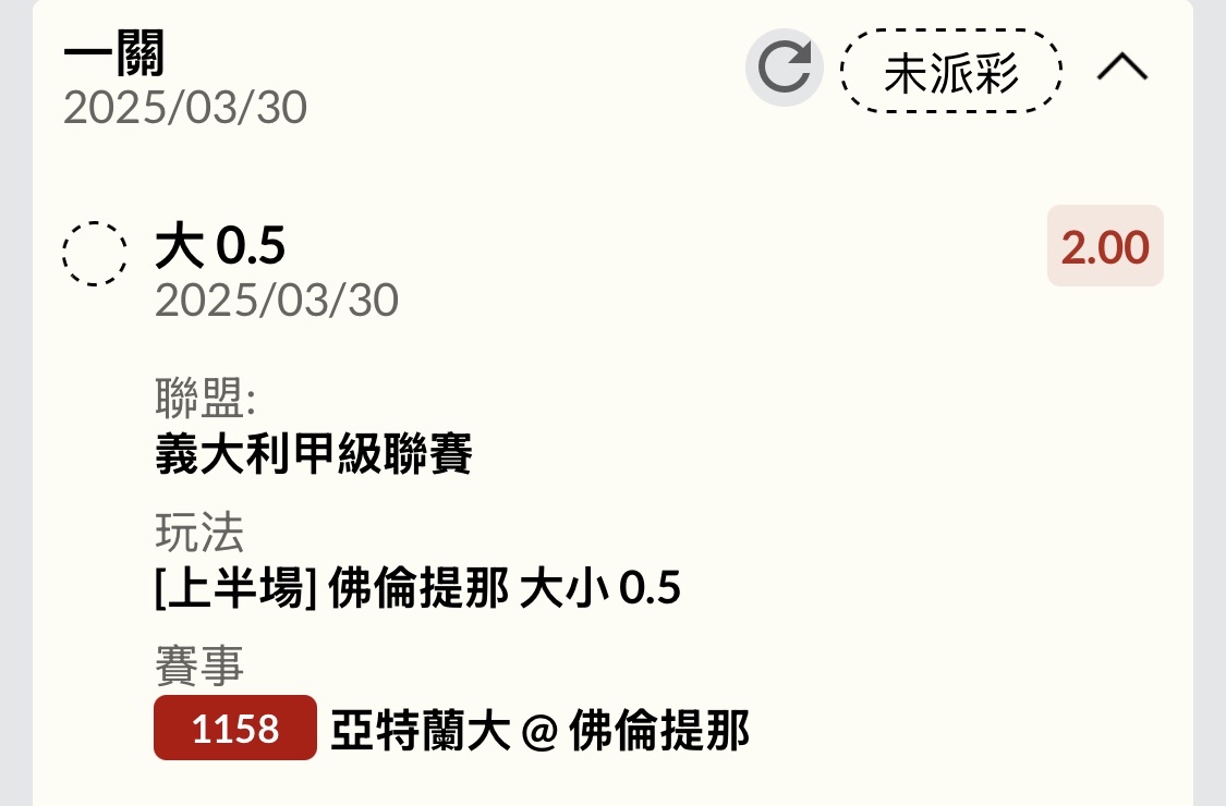 推 mitari: (足球)場中投注(亞特蘭大@佛倫提那),場中 1.174.102.30 03/30 21:44