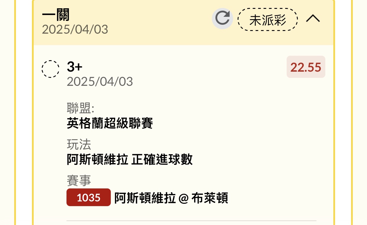 → z954008: 又升到25 倍 90分補時連進3顆 開單隊3+ 110.28.105.201 04/03 04:45