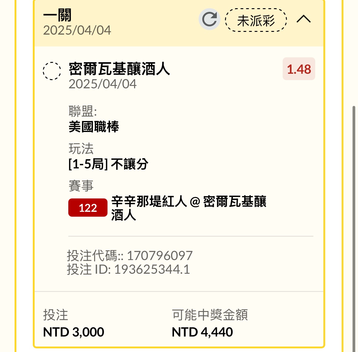 boydogboy: 4下 1出局 1.3壘有人 下1.48爛賠收 27.240.208.92 04/04 08:47