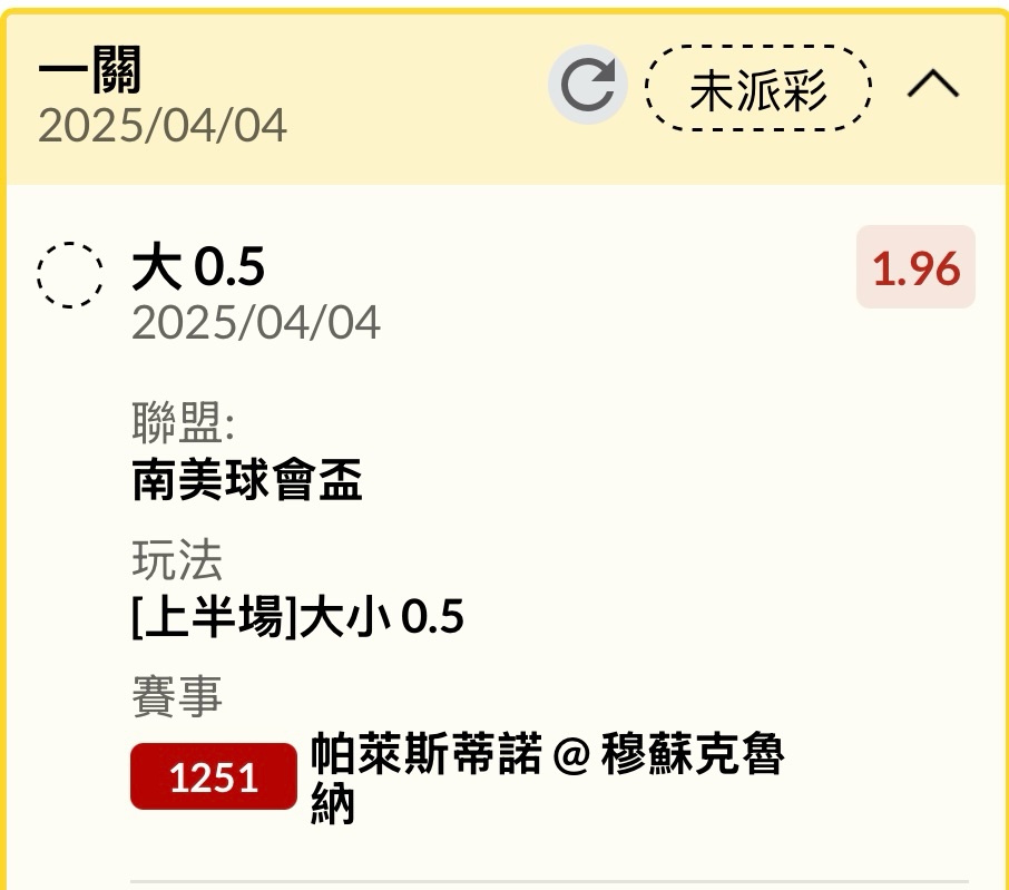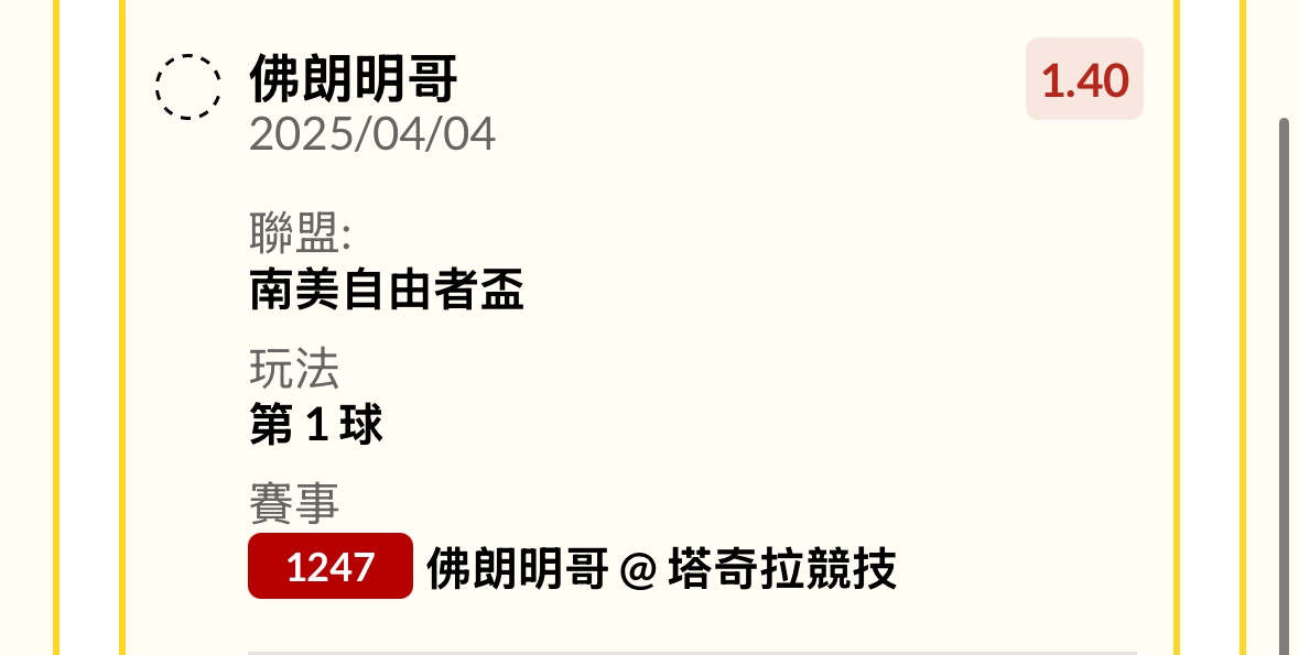 有車車嗎 佛朗明哥@塔奇拉競技 ——- 0:0 H T ——- 57’ 佛朗明哥 ——- 1:0 F T ——- 南美自由者盃 -- ※ 發信站: 批踢踢實業坊(www.ptt.org.tw), 來自: 49.216.188.174 (臺灣) ※ 文章網址: https://www.ptt.org.tw/SportLottery/M.1743728008.A.0EA