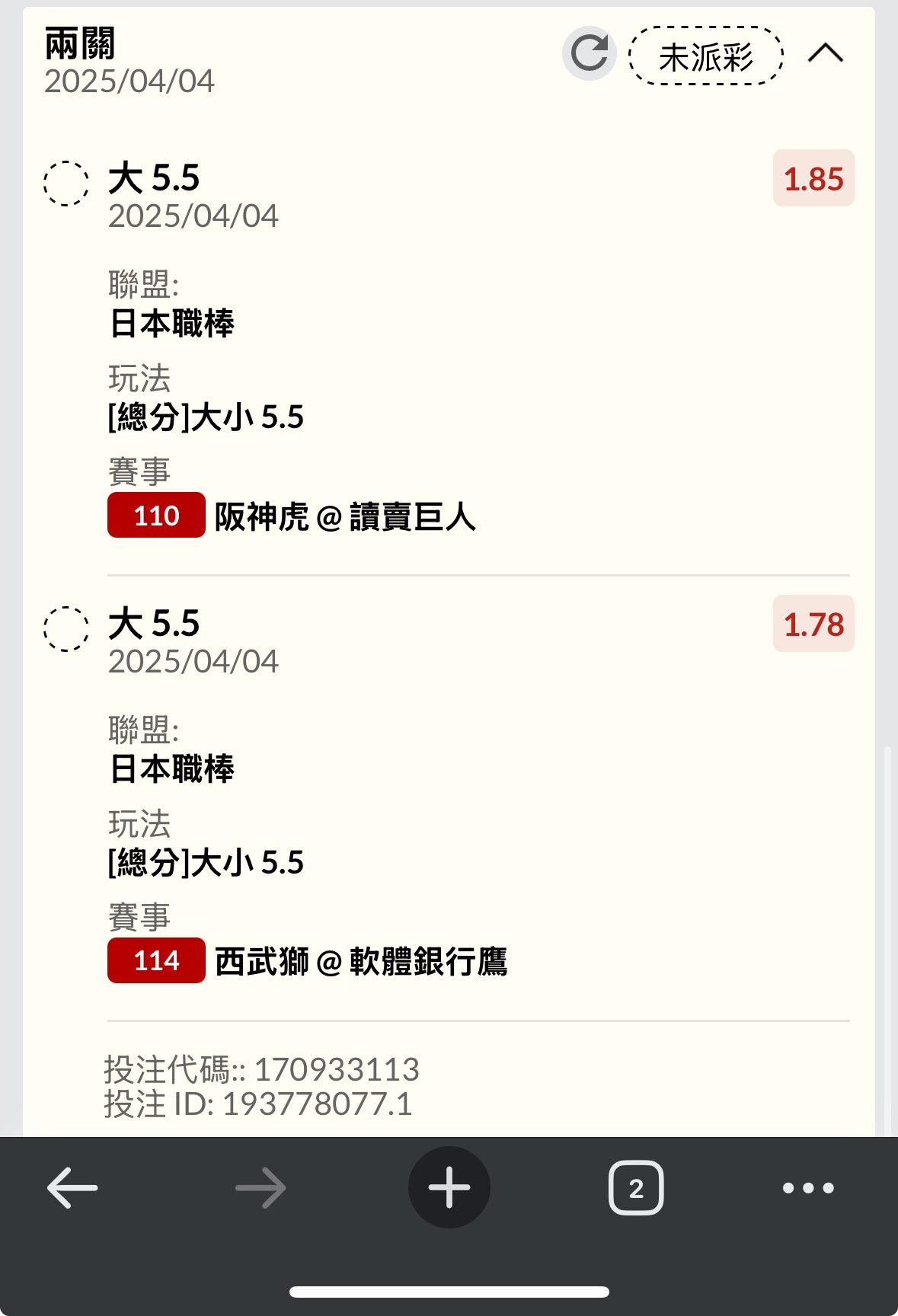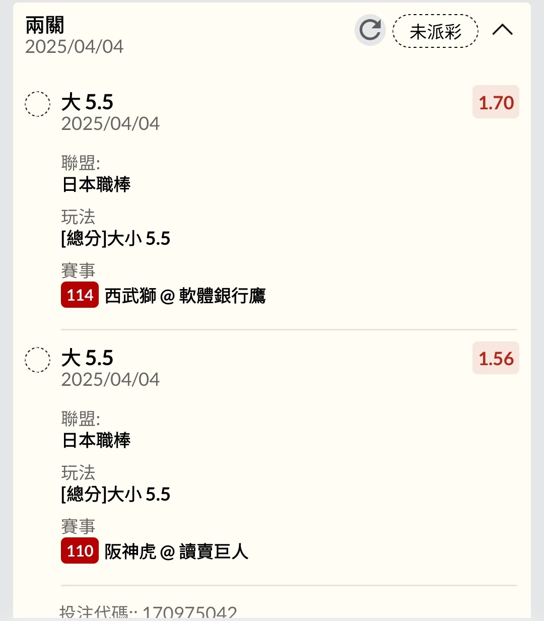 推 s85569461: 阪神升賠了 5.5大1.85 36.229.136.125 04/04 14:40