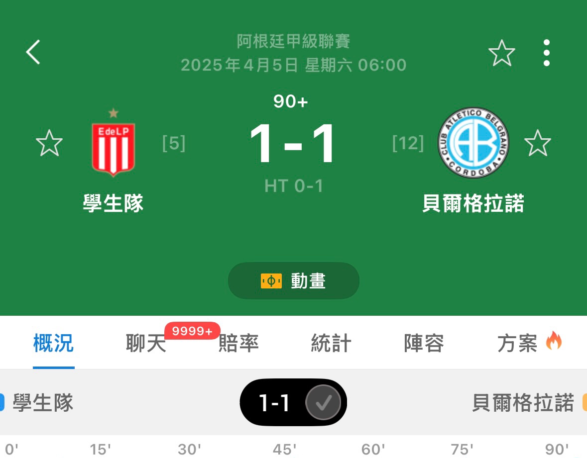 雖然快結束了 但記錄一下會不會0-1球再連四場 貝格拉諾@拉普拉塔學生 41‘貝格拉諾 —HT1:0— —FT1:0— -- ※ 發信站: 批踢踢實業坊(www.ptt.org.tw), 來自: 49.215.87.159 (臺灣) ※ 文章網址: https://www.ptt.org.tw/SportLottery/M.1743809930.A.080