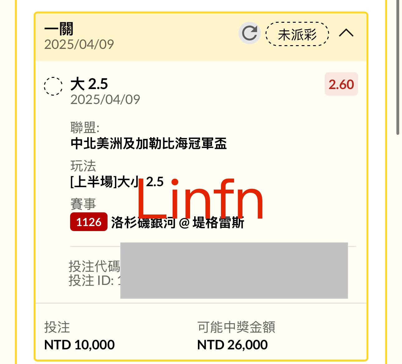 → Lige: 2.5大 賽前終盤 1.55 開打時 1.70101.12.128.0 04/09 09:19