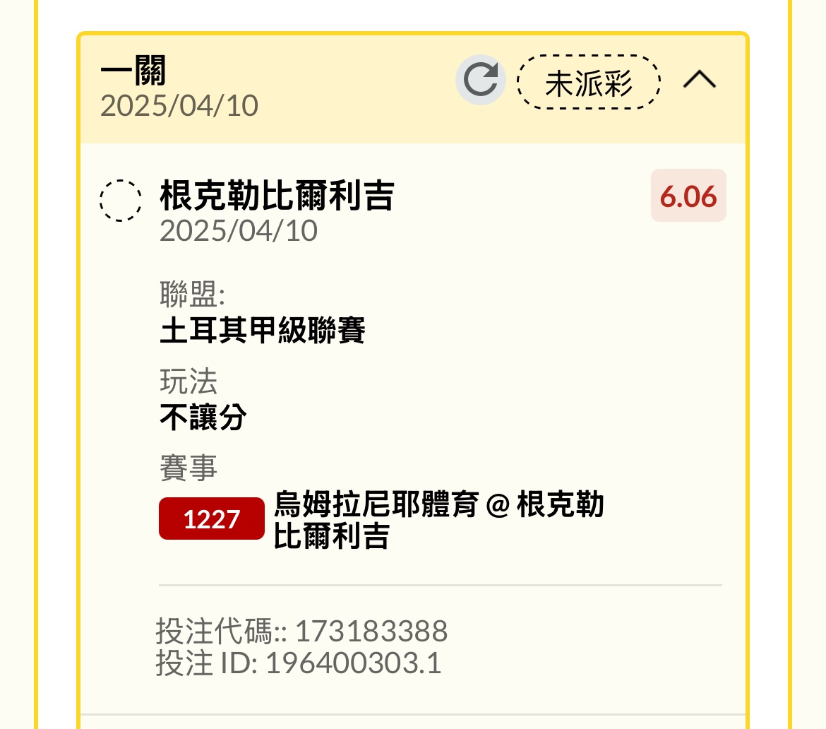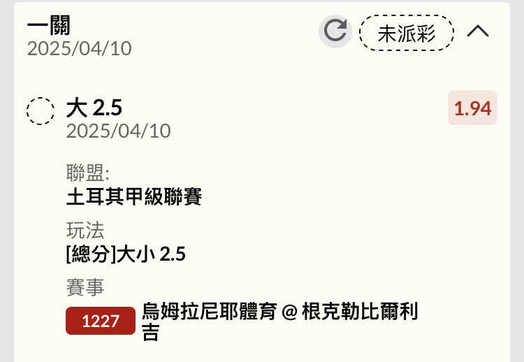 沒人在意土甲狗 兩隊都7個字7球? 烏姆拉尼耶體育@根克勒比爾利吉 ——- 0:0 H T ——- 60‘ 烏姆拉尼耶體育 90‘ 根克勒比爾利吉 90‘+2 根克勒比爾利吉 ——- 1:2 F T ——- -- ※ 發信站: 批踢踢實業坊(www.ptt.org.tw), 來自: 49.218.91.26 (臺灣) ※ 文章網址: https://www.ptt.org.tw/SportLottery/M.1744291871.A.2BE