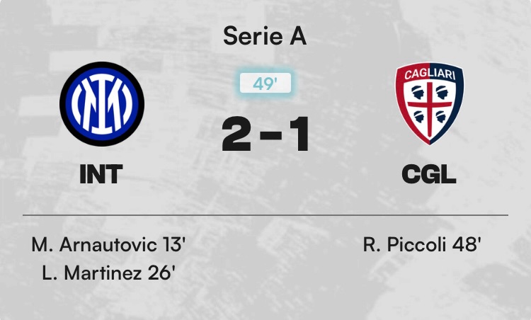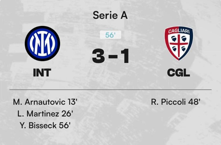 卡利亞里3:1國際米蘭 100.00