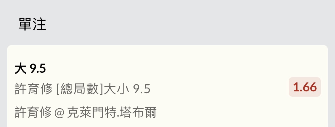 晚上要跟高中同學去喝酒 應該回來剛好可以玩23:00的電話場 許育修@塔布爾 客大 (9.5) 賠率1.66 塔布爾是地主,但穩定性也不高 (穩定性高也不會排名這麼低就是了) 老許在這站的表現蠻不錯的 這場應該會是接發決勝負,可能會很多破發 依照近況來看,老許有機會偷一盤 2025賽季推447過240 https://i.imgur.com/pVN4Xs6.jpeg https://i.imgur.com/qsNU0IE.jpeg https://i.imgur.com/F4zN5xN.jpeg -- ※ 發信站: 批踢踢實業坊(www.ptt.org.tw), 來自: 27.51.17.214 (臺灣) ※ 文章網址: https://www.ptt.org.tw/SportLottery/M.1749804589.A.2E9