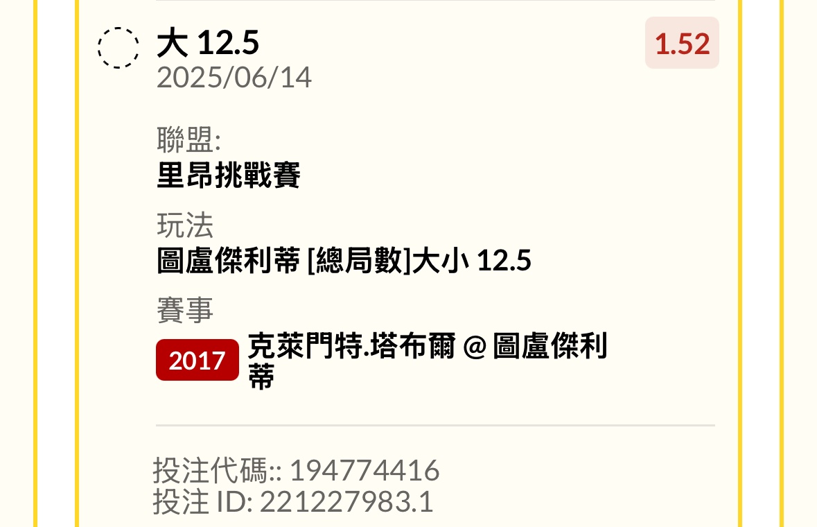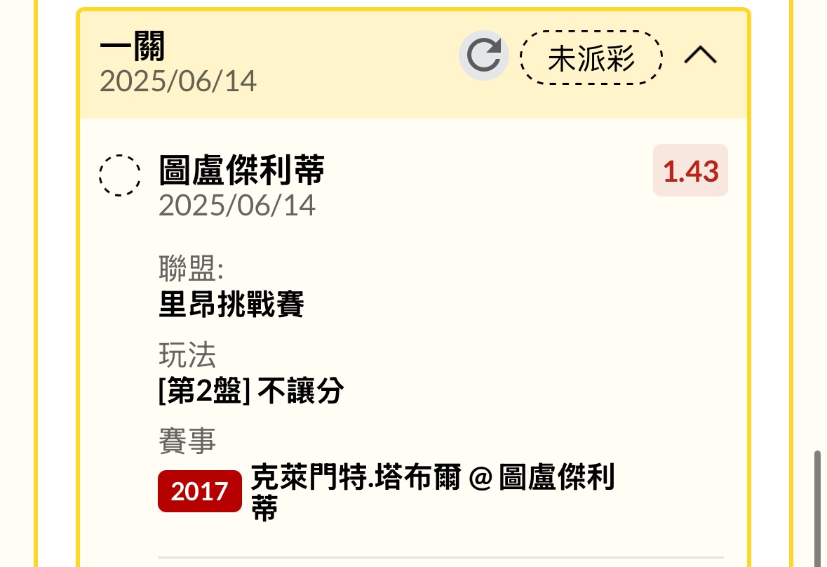 → hebe720330: 結果是客大9.5 36.228.78.140 06/14 22:25