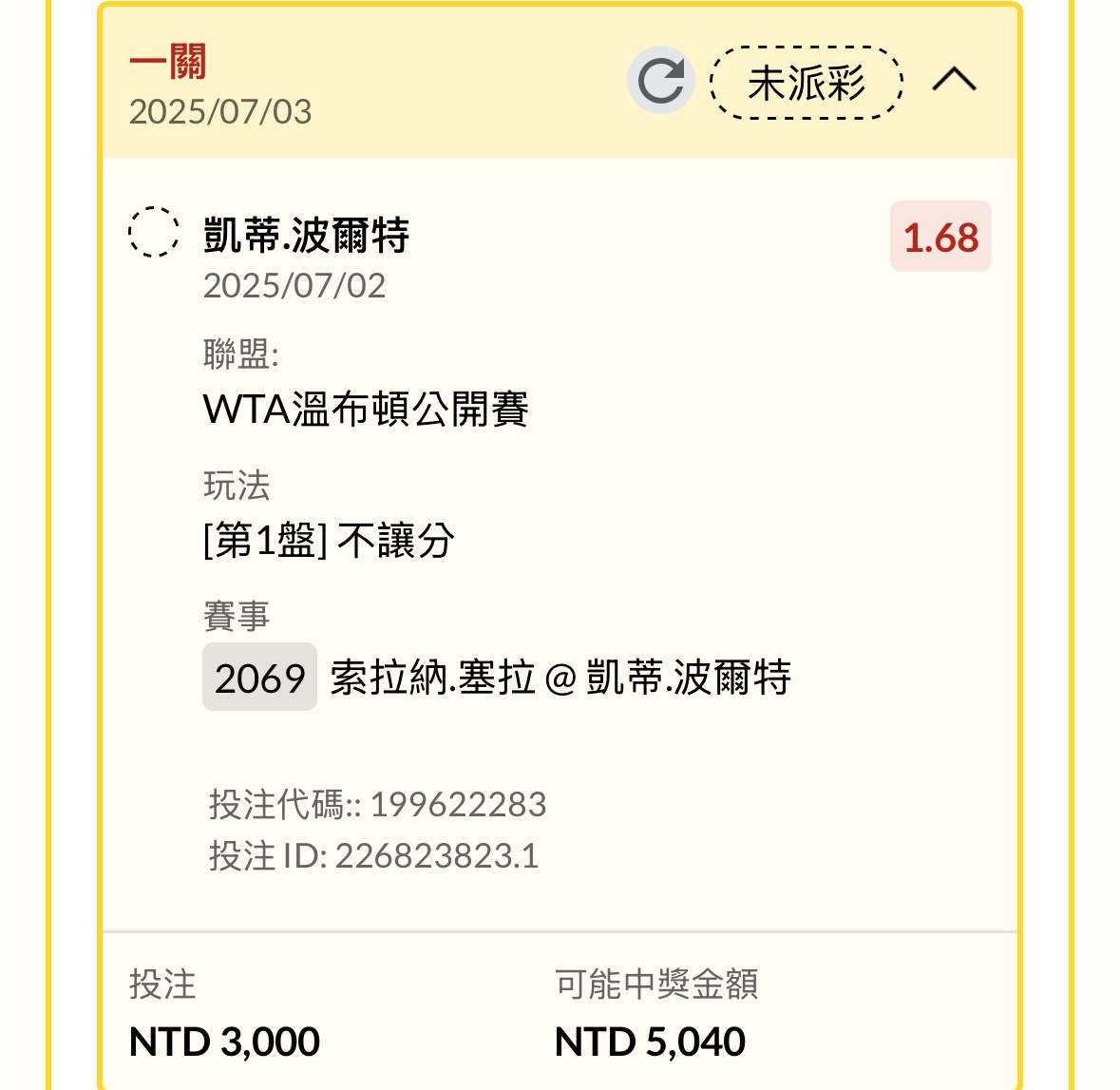 → zetazko: 因為賽前賠率太高 3.65 27.242.1.73 07/02 23:59