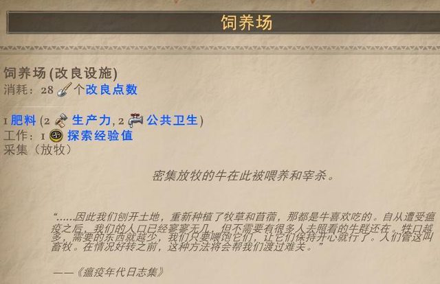 瘟疫時代下的牧場建築則額外有肥料 - 增加衛生