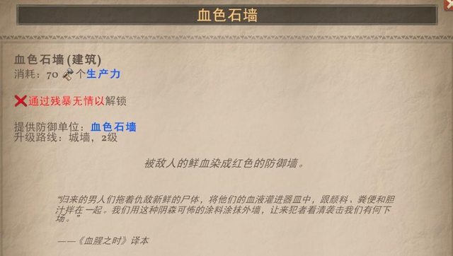 將敵人的鮮血抹在石牆,頭骨則做成塔樓 與原本的鐵器時代的石牆概念不同,導致不會有投石機、投石船的技術存在