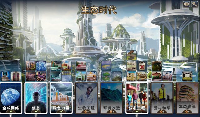 高山可以變成丘陵 海洋可以變成沙漠 林地、沙漠、凍原全部變成草原 這時期不論產能跟人口都可以大一步的提升 城鎮也可以選擇生態城市 帶來大量糧食以及文化收入