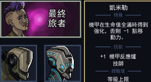 其中駕駛員「凱米勒」的自帶效果有「滿血時傷害+1、否則行動力-1」,