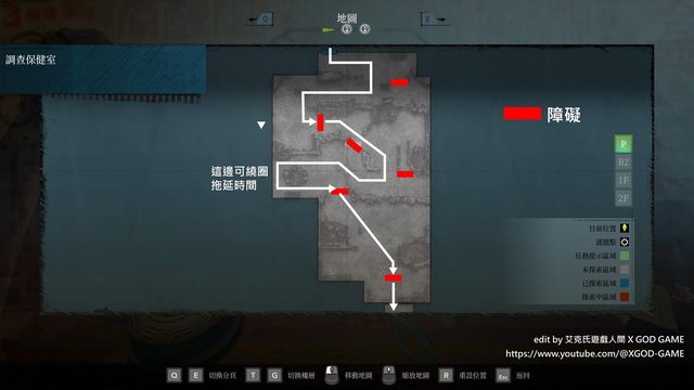 1F教官室 :遙控器(還有其他東西可以調查不過建議晚一點,比較安全)