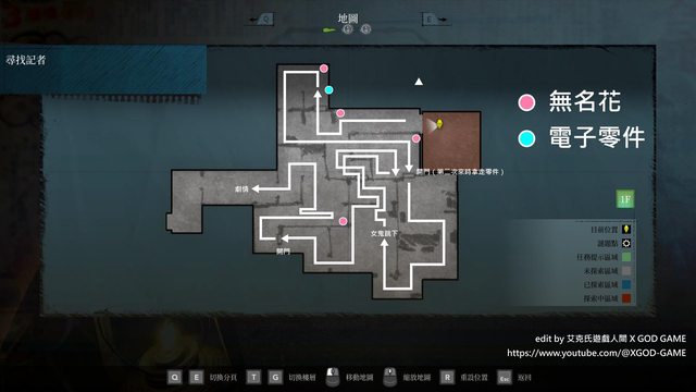 直走後左轉再右轉,拿到電子零件後馬上放回去,護元燈照出花