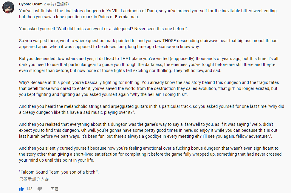 → joy3252355: 關於地下聖堂隱藏迷宮的BGM評論 覺得他說得非常到位 06/02 22:46
