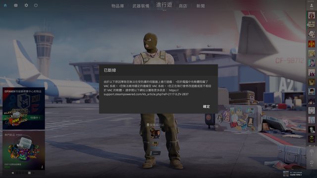 打到一半跳出VAC警告