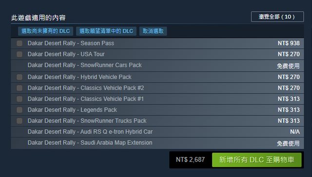 「Dakar Desert Rally」Epic商店頁面少了「Dakar Desert Rally - Saudi Arabia Map