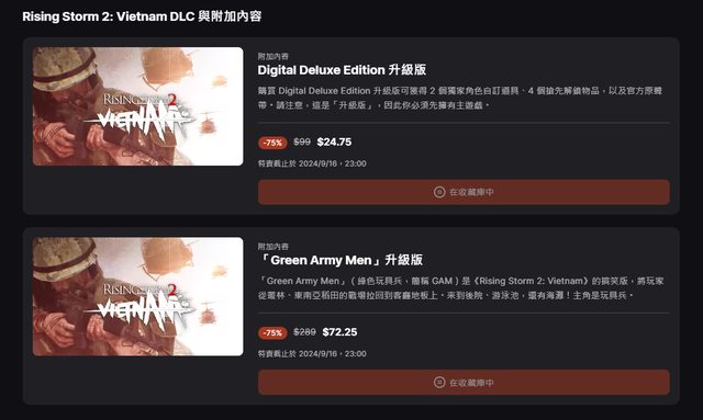 「Rising Storm 2: Vietnam」Epic商店頁面少了好幾個DLC是已經包含在遊戲內了嗎?