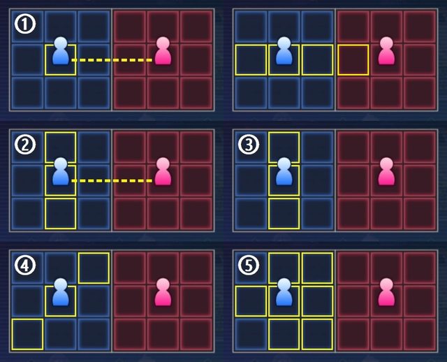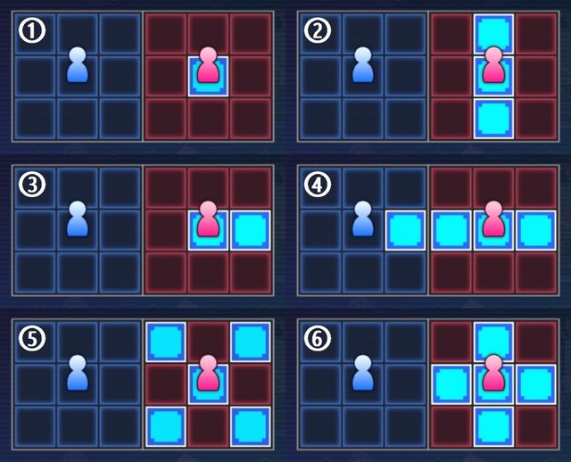 6.十字:主角正前方,距離主角三格的位置,及其前後左右的位置。