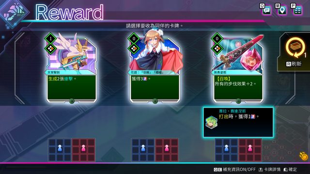 每打完一場戰鬥,會隨機出三張讓玩家選一張放進牌組,同名卡牌沒有數量上限,