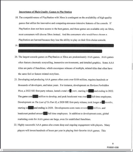 不會有的 遊戲開發成本從來都沒被官方正式承認 之前流傳最廣的SONY告微軟併購AB時提交的證據 "《地平線 西域禁地》的開發時間為 5 年, 成本為 2.12 億美元,共動用了 300 名員工; 《最後生還者 二部曲》的成本為 2.2 億美元 ,動用 200 名員工。" 仔細找來源後只有這個 https://i.imgur.com/c5Mo5JM.png