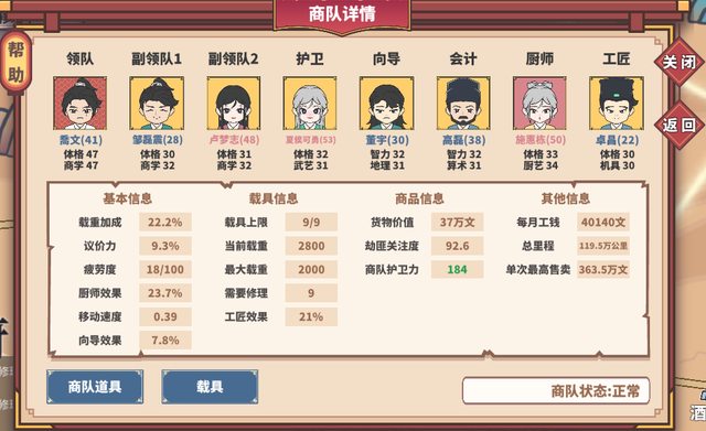 要注意的是:開局後要早點去客棧雇傭一些人手擴充商隊護衛、副領隊。