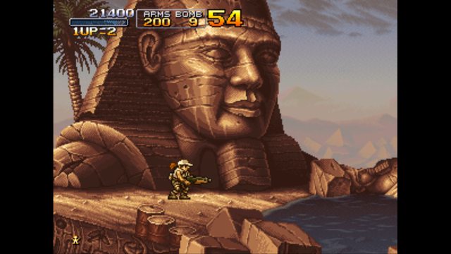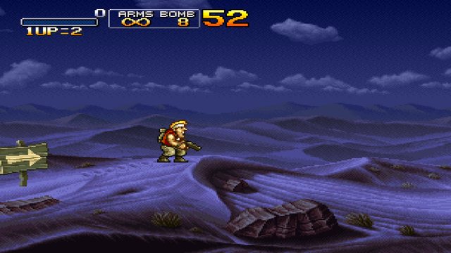 街機遊戲Metal Slug小時候常玩的回憶 (越南大戰/合金彈頭) 可以單人/雙人一起玩的2D像素風橫版射擊遊戲 遊戲背景是未來 敵人人物是二戰風格 和越戰沒有關係 遊戲是像素Q版繪圖 具有許多搞笑元素 吃太多食物會變大胖子 https://imgur.com/6jQ05vx 會發氣功的戰俘 https://imgur.com/AF5pHKY https://i.imgur.com/nWXQ4TA.jpg