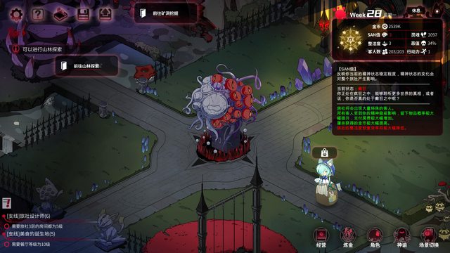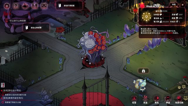 隨著員工(老婆們)的加入 開始解鎖 煉金系統 料理系統 靈魂系統 探索系統 挖掘系統