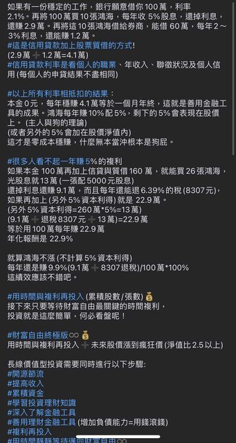 → iamaq18c : 同事也是用這個方式 用房貸款 買高股息ETF 09/26 08:41