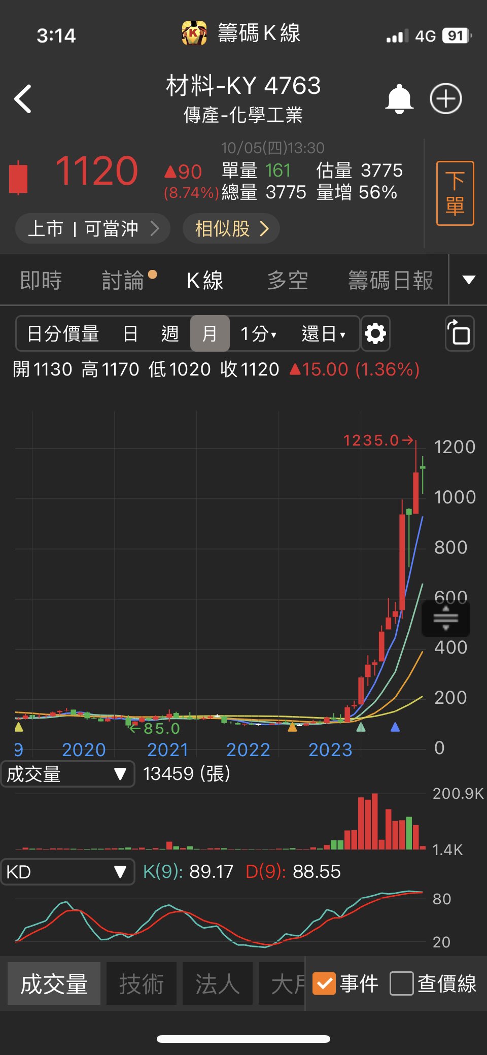 推 kmshy : 今天一度漲停讚讚 明天交給看營收買股票的追 破月線 10/05 15:16