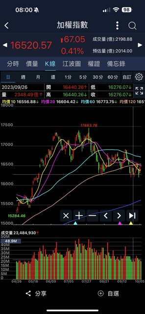 PS.根據整理盤的操作模式+連假前丙種賣壓,我在10/2月線下壓時把股票全清了