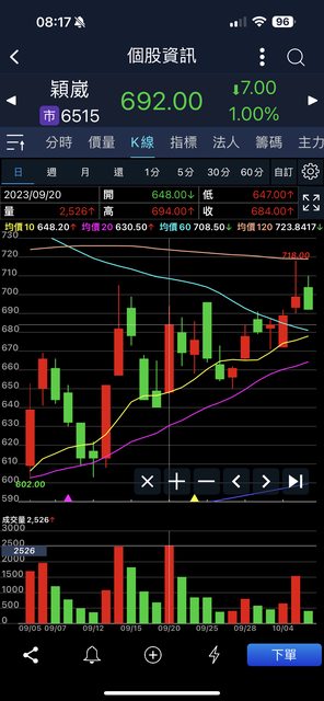 : 承上,9/7那天看到大盤走勢不好&跌破均線,穎崴平盤上下震盪,覺得久盤必跌就先退出