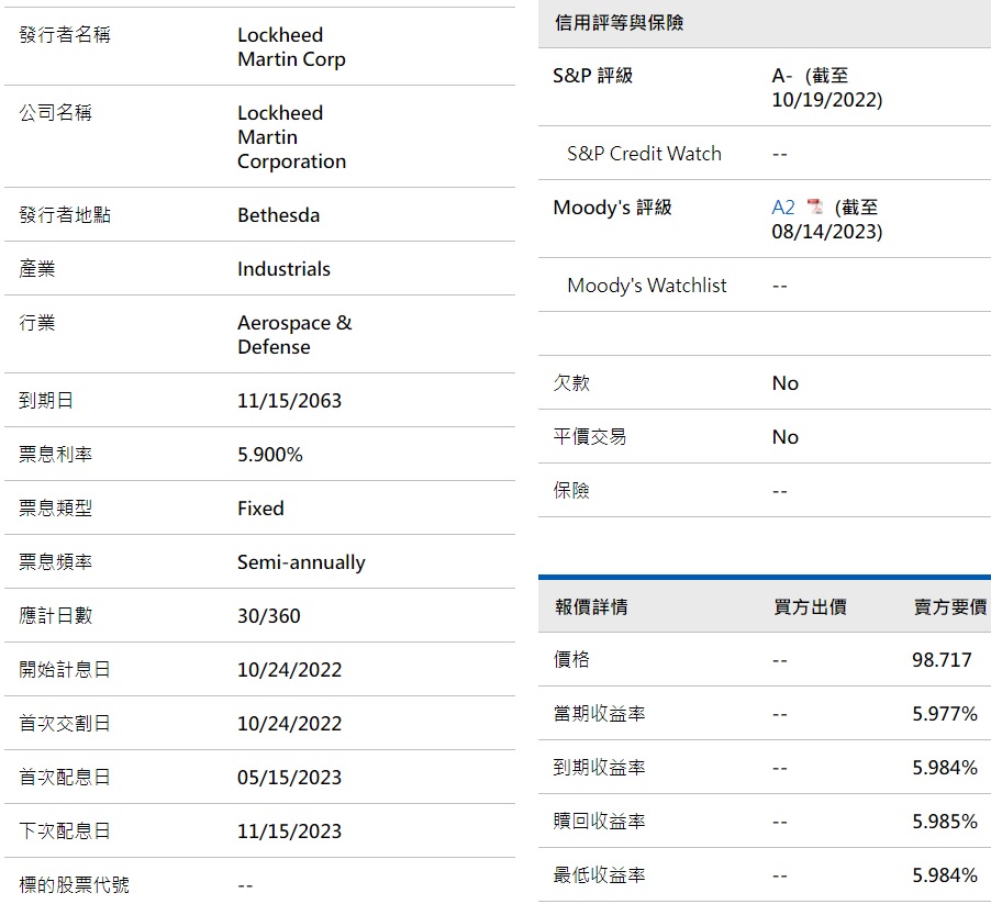 → icelaw : 洛克希德*馬丁 軍火之王 40年直債 10/07 22:10