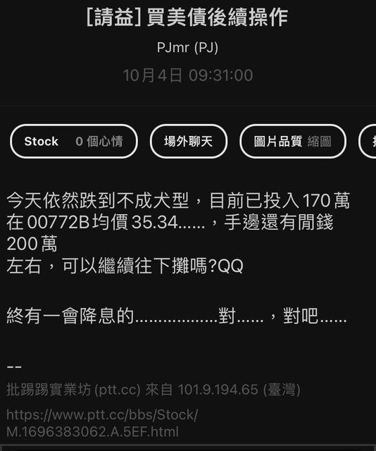 ※ 文章網址: https://www.ptt.org.tw/Stock/M.1696958850.A.418