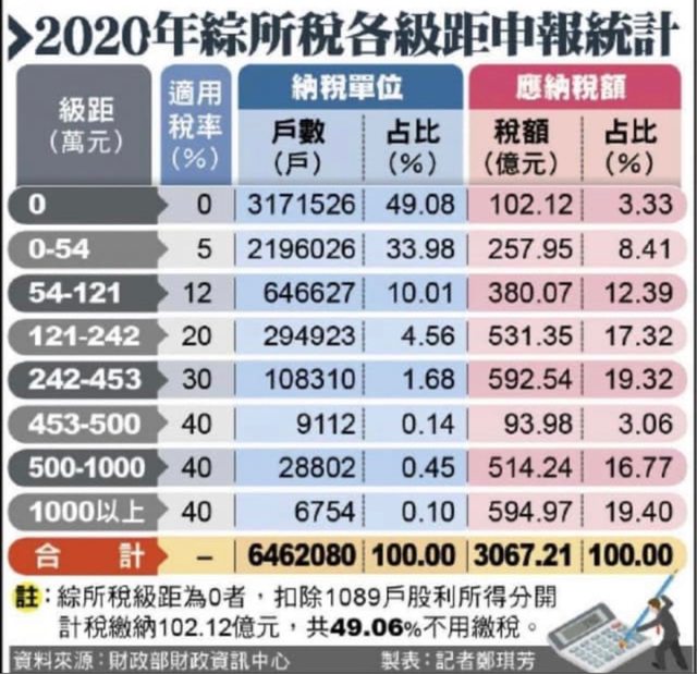 推 ko1 : 最後一點不就說明 台灣有一半的人薪資低到不用繳稅 05/29 19:47