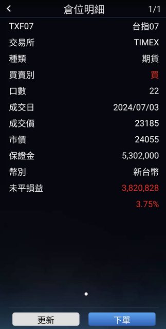 → jackey22 : 補單,禮拜五中午再進2口繼續跟隨大哥 07/13 16:23