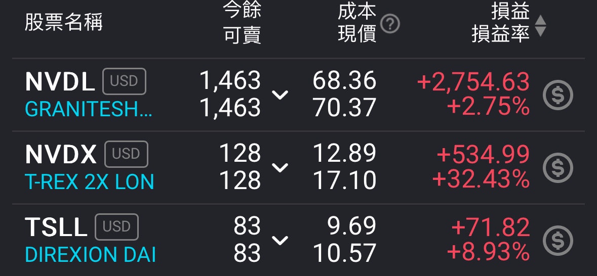 推 pponywong : 5x/4x 加碼了NVDL 另外高點賣掉ARM 又接回 08/20 12:29