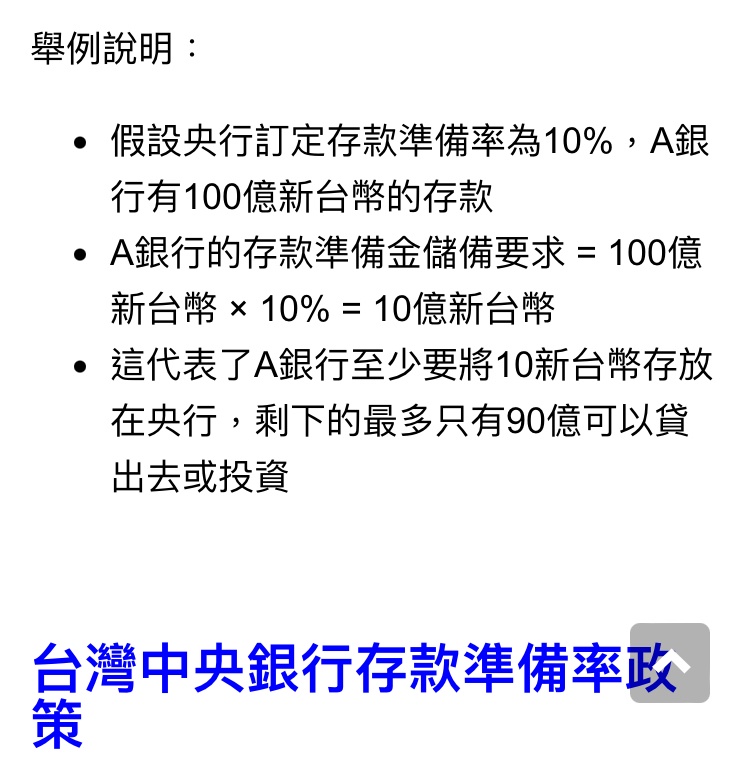 推 Smaragdus : 存準率約10%意味著銀行需保留10%的存款作為準備金 08/20 17:11