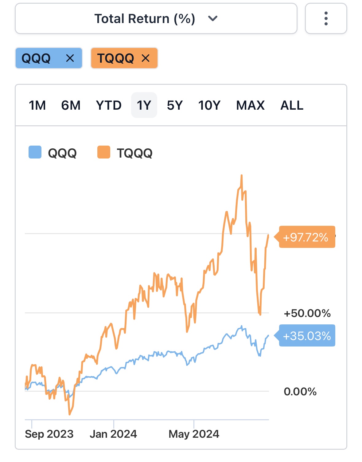 推 w61036 : 你很猛,你去看QQQ早就新高多久了,TQQQ還在山腰 08/21 07:05