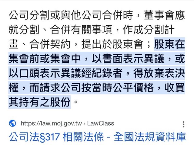 → hijacker : 提出異議權是股東權利 只是比較麻煩而已 08/23 00:19