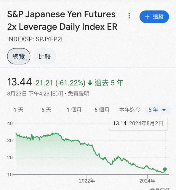 追蹤標的是 標普日圓期貨日報酬正向2倍ER指數
