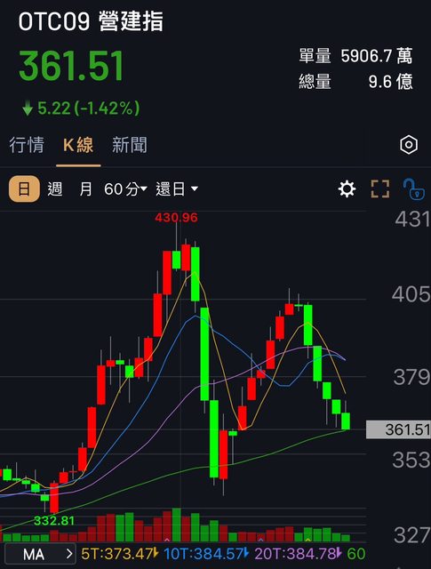 推 corcor : 跟我算的不一樣?從五天前高點上櫃營建指回落11%多 08/27 08:27