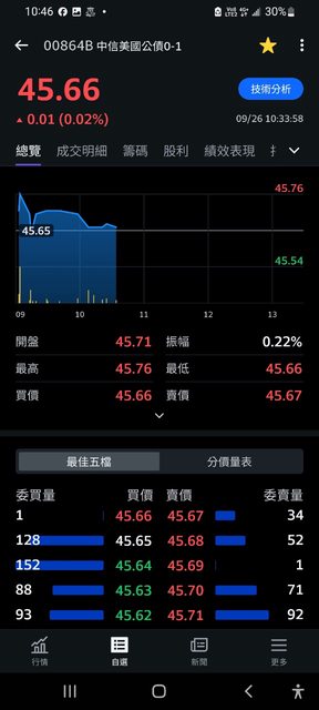 → yamatai : 問題是一個月前買的一堆績優股現在可以賺10%耶09/26 10:32