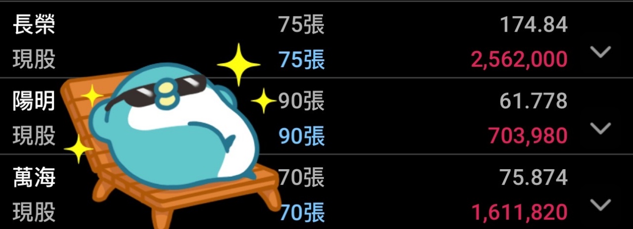 股,有個股也有ETF有共同基金間接持有,存款不到300萬,多放短期定存,支應