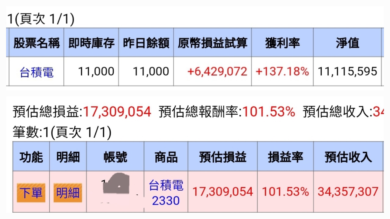推 LiamTiger : 現在賣肝賣腎買1000元台G,五年後台積噴到2000你會 09/26 20:56