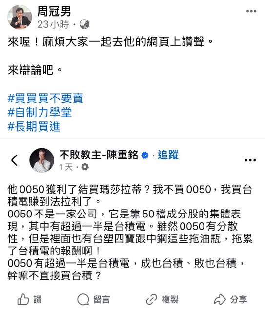 推 apple0123 : 有錢買台積電沒錢買0050啊 09/27 10:45