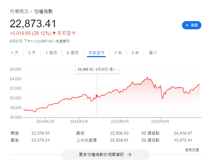 噓 as80110680 : 恆生指數本年至今漲23%,台灣加權指數漲28%,蛤? 09/27 11:46