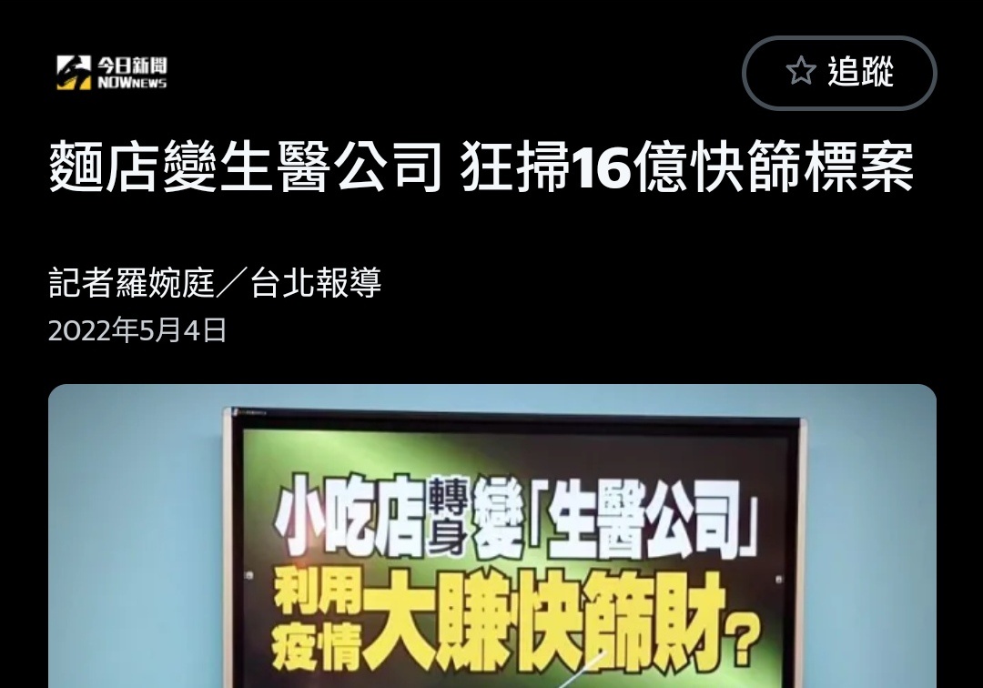 → molsmopuim : 麵店都可以外包16億快篩標案了 博客兄弟外包7兆鎂晶 09/28 04:05