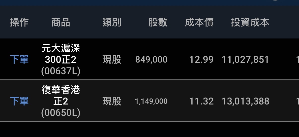 → polomam : 股嗎??二。持有正二,目標明年農歷年前獲利100-150 09/29 08:02