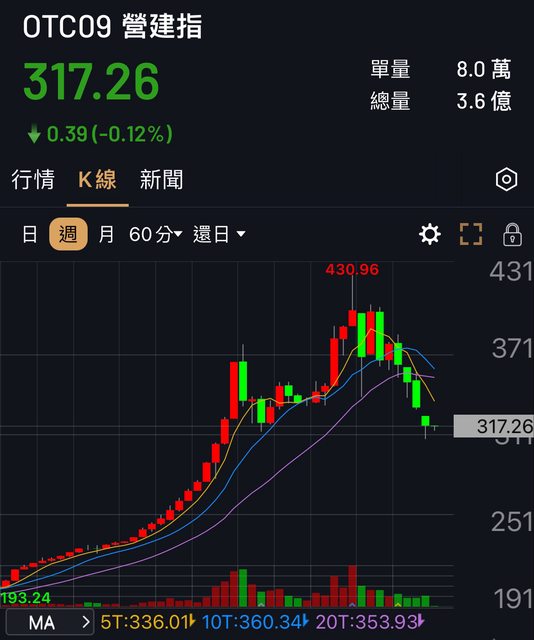 推 YangChang : 房價沒跌阿,營建股漲多拉回正常 09/30 13:35